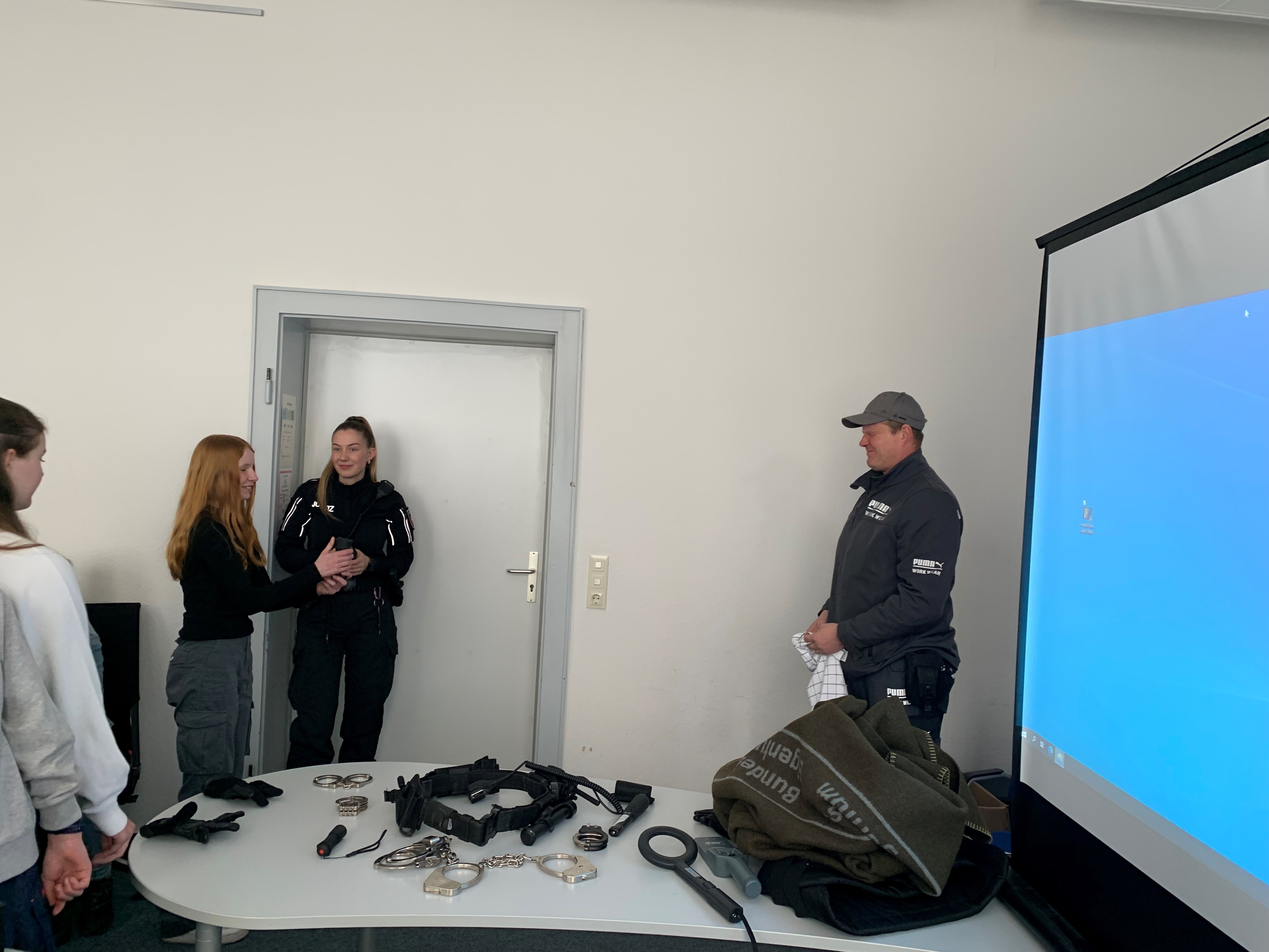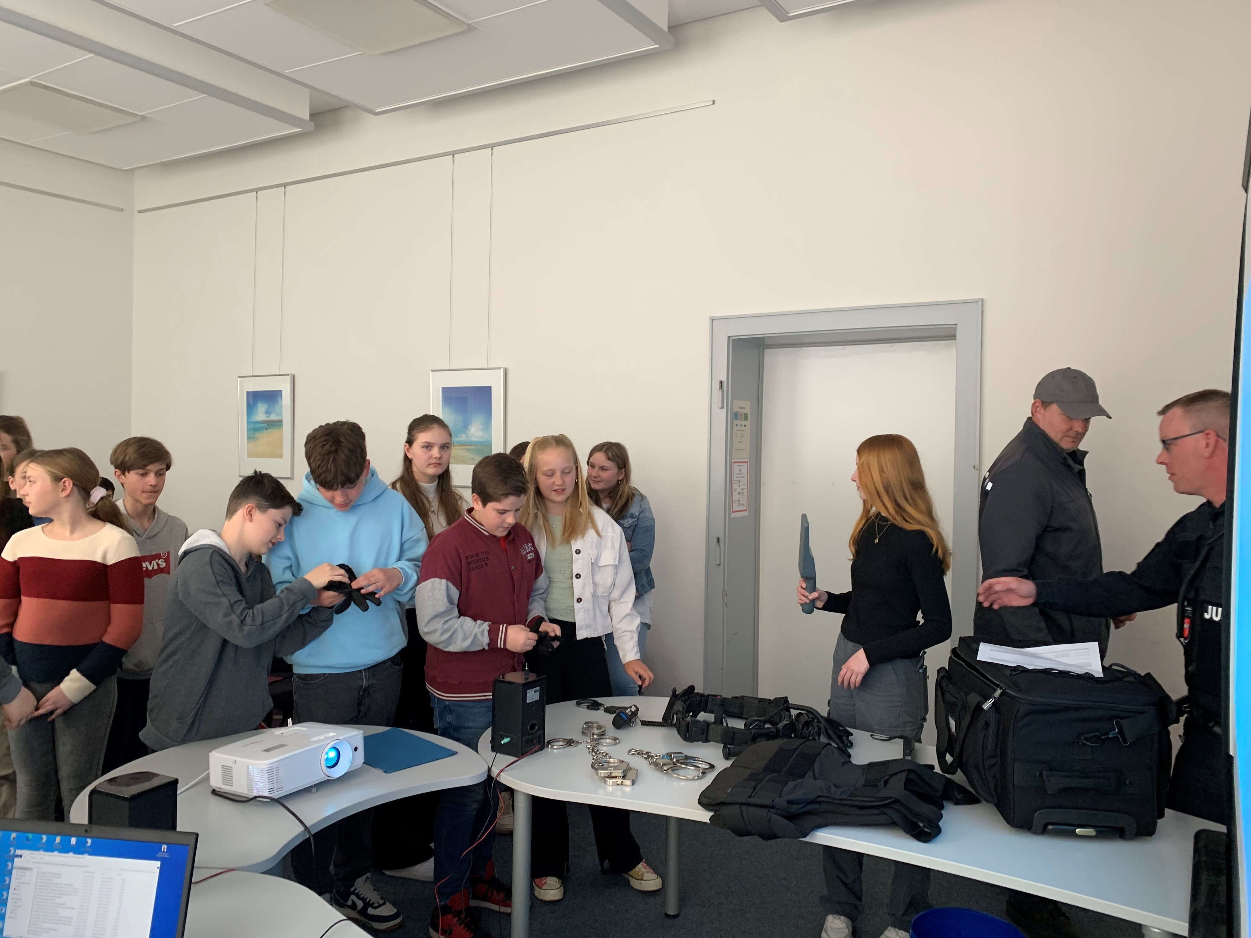 Die Ausrüstung der Wachtmeisterinnen und Wachtmeister konnte beim Zukunftstag von allen Interessierten angeschaut und ausprobiert werden.